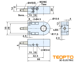 | 输出Output | PNP or NPN, 200 mA, NO/NC;switchable | ||||||||||||