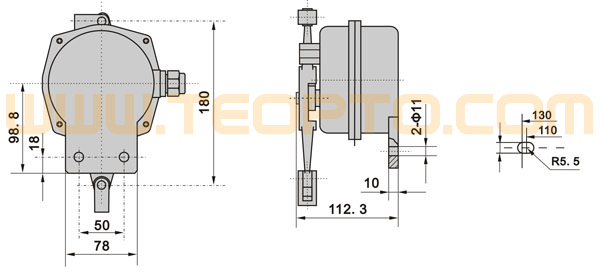 | 当胶带运输现场发生紧急事故时,拉动系在吊耳上的钢丝绳,是机内的滑块与开关作用,发出停机信号。 松开钢丝绳后开关自动复位。 |