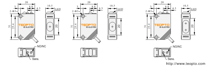 | 对射接收器 | 对射发射器 | 直接反射型,镜面反射型 |