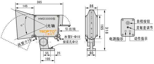 | 视场角度 | 安装距离1m时,视场范围为φ170mm | |||