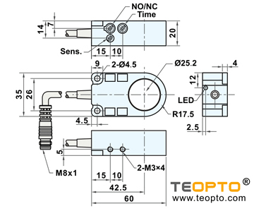 | 输出Output | PNP or NPN, 200 mA, NO/NC; switchable | |