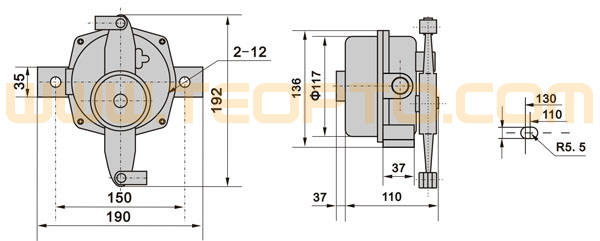 | 当胶带运输现场发生紧急事故时,拉动系在吊耳上的钢丝绳,是机内的滑块与开关作用,发出停机信号。松开钢丝绳后开关自动复位。 |