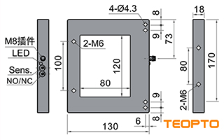 1、灵敏度调节(角度范围270°)用塑料改锥调节灵敏度电位器。 顺时针调节,灵敏度增大;逆时针调节,灵敏度减小。 2、常开/常闭切换(NO./NC.)顺时针调节到头为常闭;逆时针调节到头为常开; 3、请尽量使用标配附件,塑料改锥调节灵敏度,切勿使用其他不合适的改锥用力强行把电位器拧坏。  |